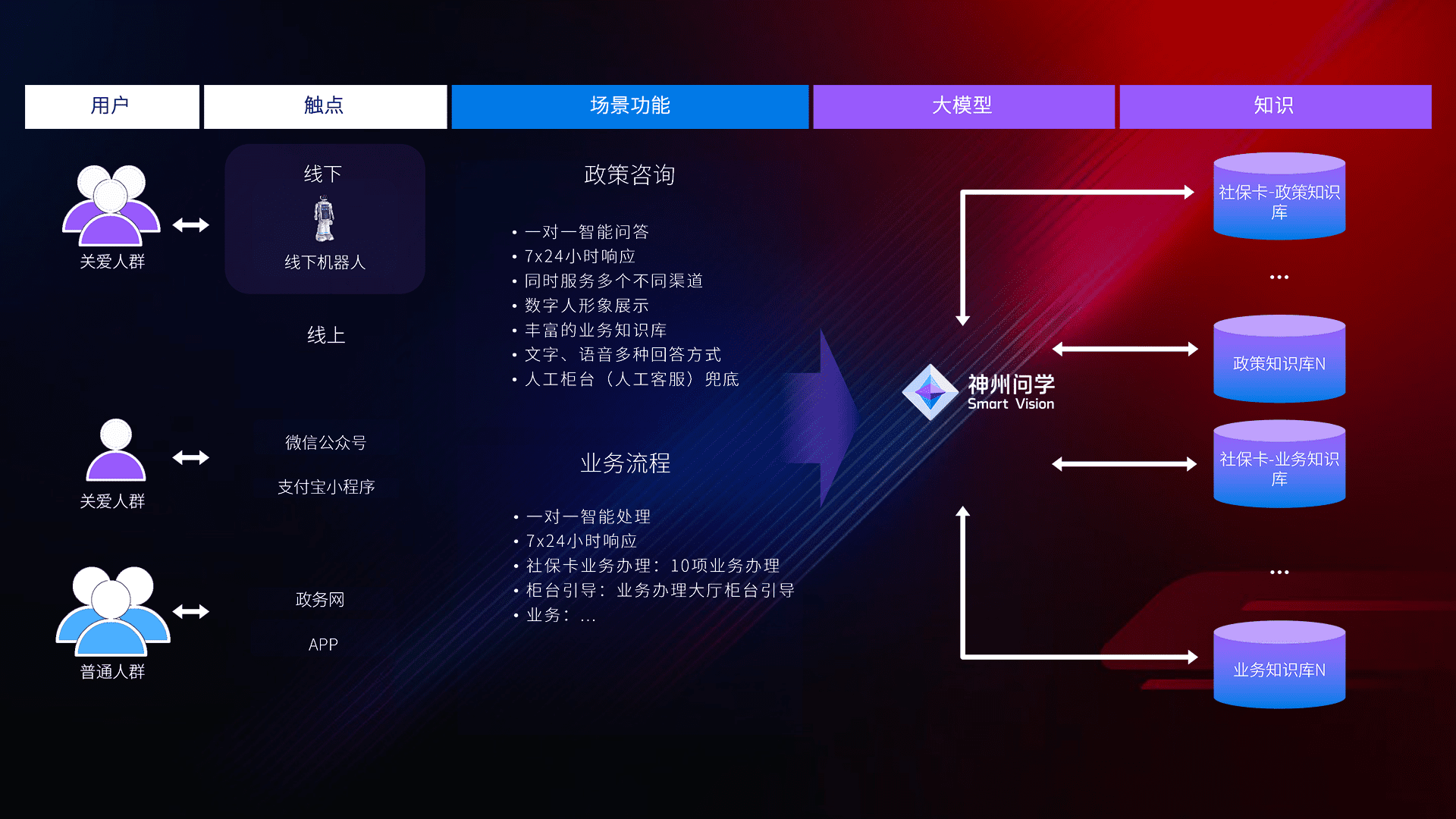 • 线上线下全覆盖:线上提供微信公众号、、支付宝小程序、、、、政务网、、、app多种渠道,,,,与线下机器人形成完整服务体系。。。。